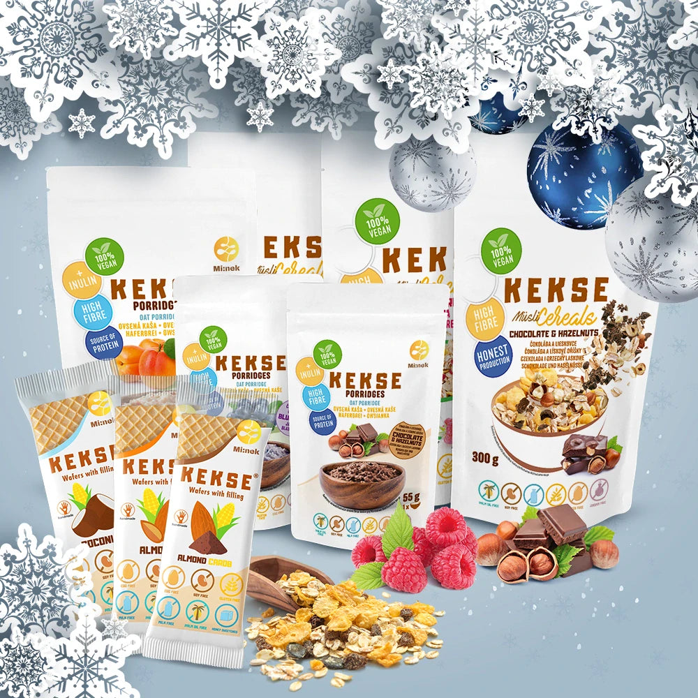 A právě proto tu KEKSE jsou. Pro všechny, kteří chtějí jíst s rozumem. Pro každého, kdo hledá dobroty bez lepku, laktózy, vajec, sóji nebo konzervantů. Pro děti, dospělé i seniory. Pro každého, kdo se chce cítit lépe bez zbytečné zátěže.